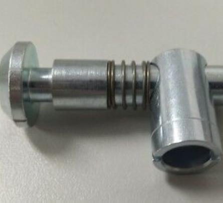 Diese Abbildung zeigt, wie der Anschluss funktioniert. Achten Sie darauf, dass die kleine Rille im Kopf des Bolzens immer in Richtung des Steckers zeigt, damit er richtig funktioniert.